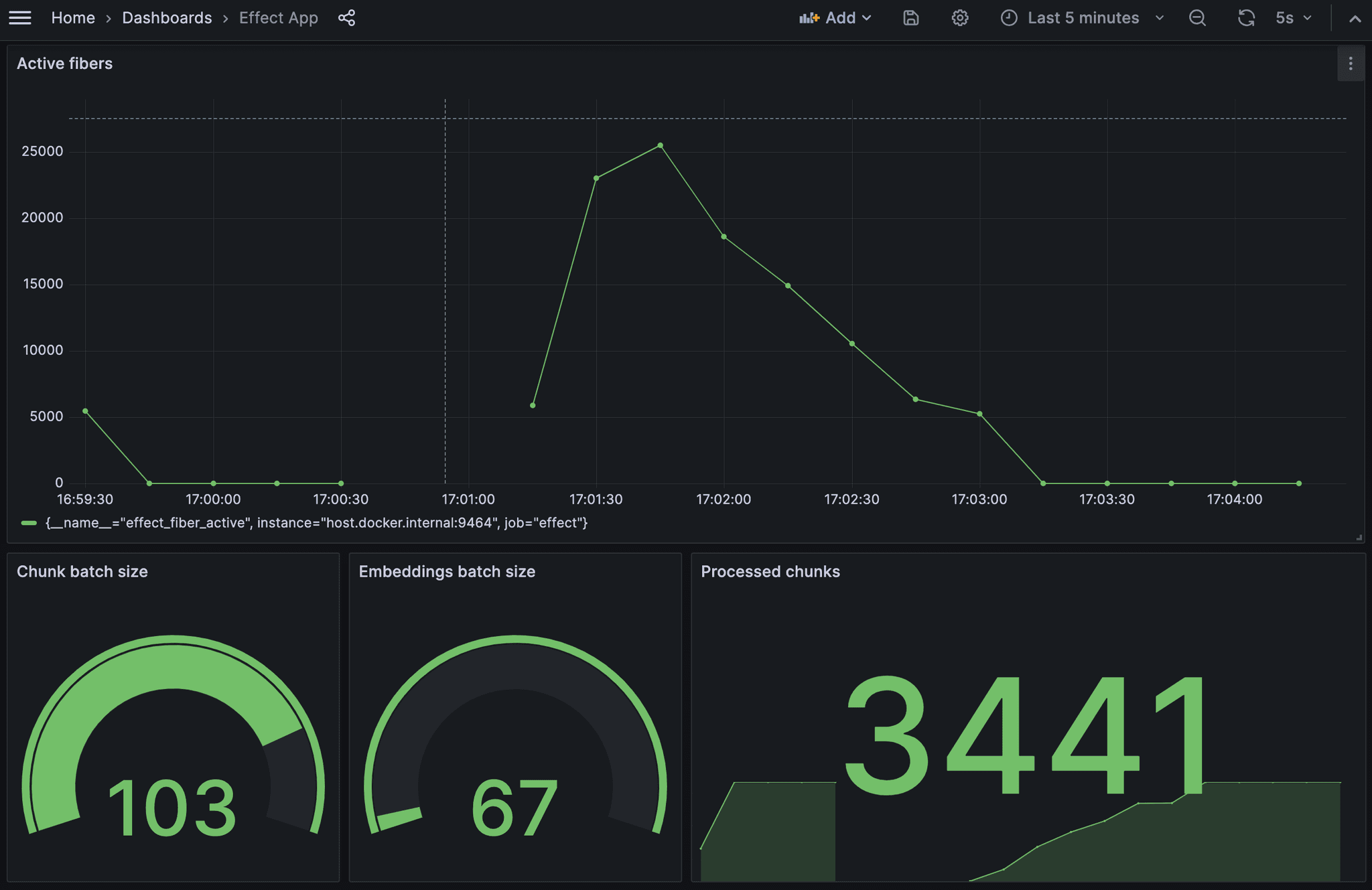 Effect has built-in support for metrics. You can use the provided OpenTelemetry exporter to integrate with a wide range of dashboards.